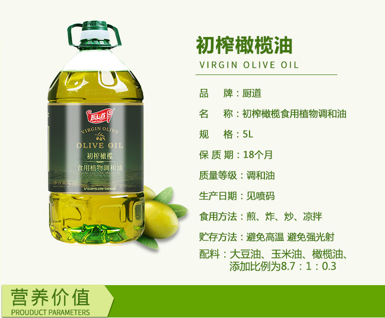 初榨橄榄食用植物调和油5L 家庭装 食用油 植物油