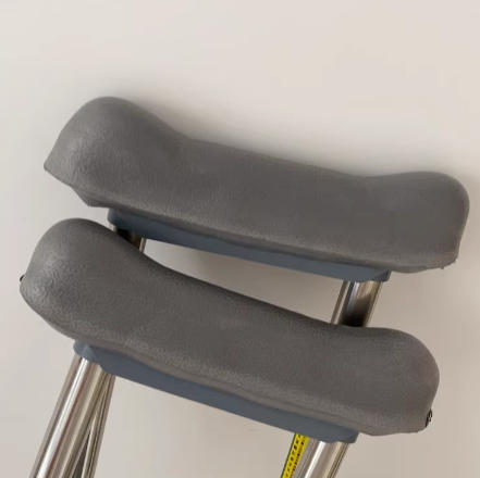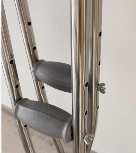 腋下拐杖一对,不锈钢材质,高度可调节。扶手采用灰色软垫设计,舒适耐用。底部防滑胶垫,使用安全。适合不同身高使用,可调节范围大。成色很新,几乎没用过。